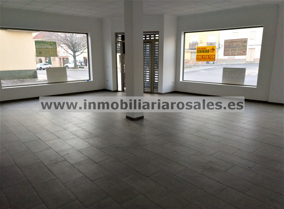 Local en alquiler en Baena, totalmente terminado, zona muy transitada y con fácil aparcamiento. En esquina, con más de 15 metros lineales de fachada y amplios escaparates. Superficie: 100 m2, 1 baño, todo con terminaciones muy actuales y adaptado para cualquier tipo de negocio. También en venta.